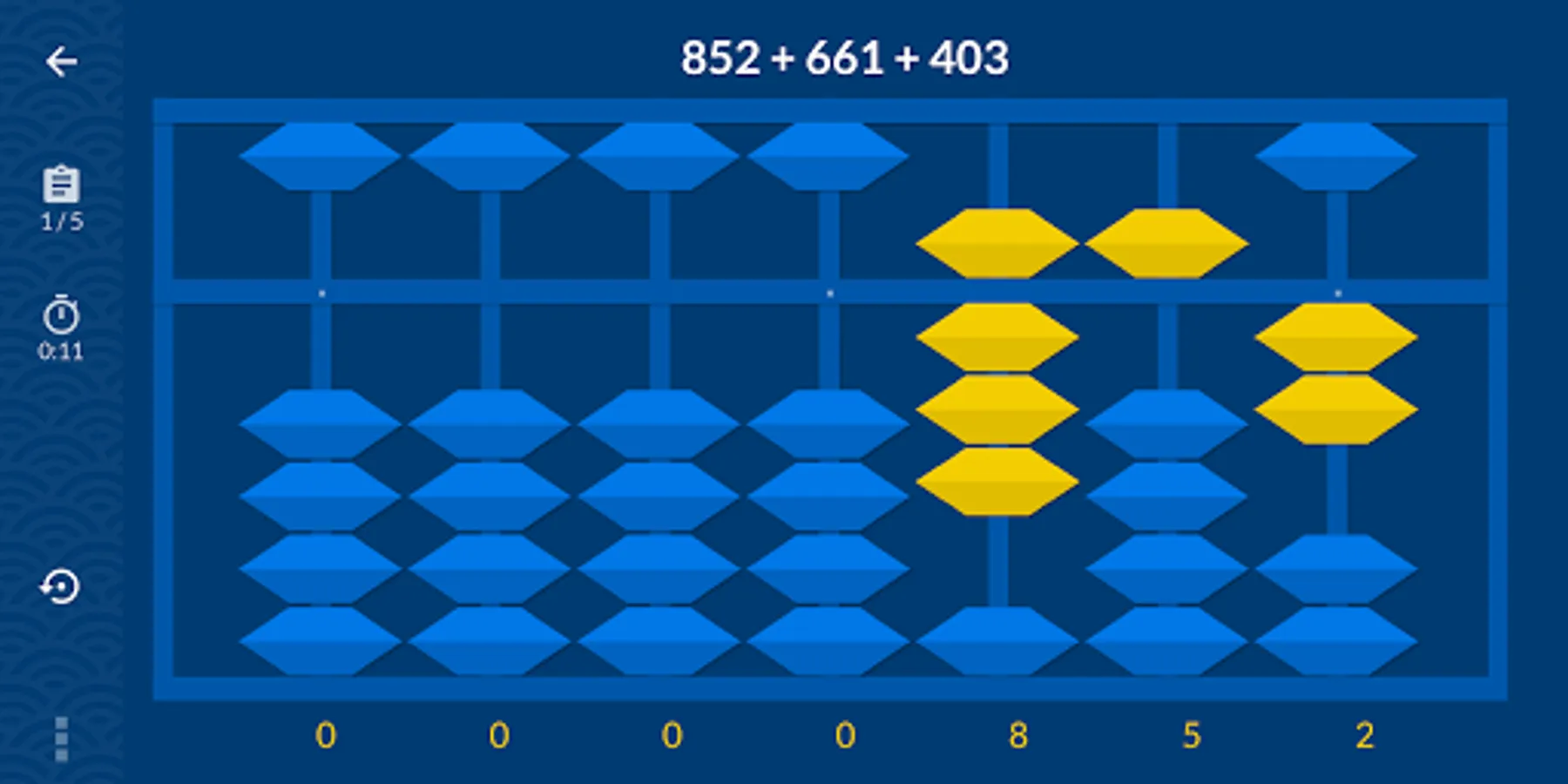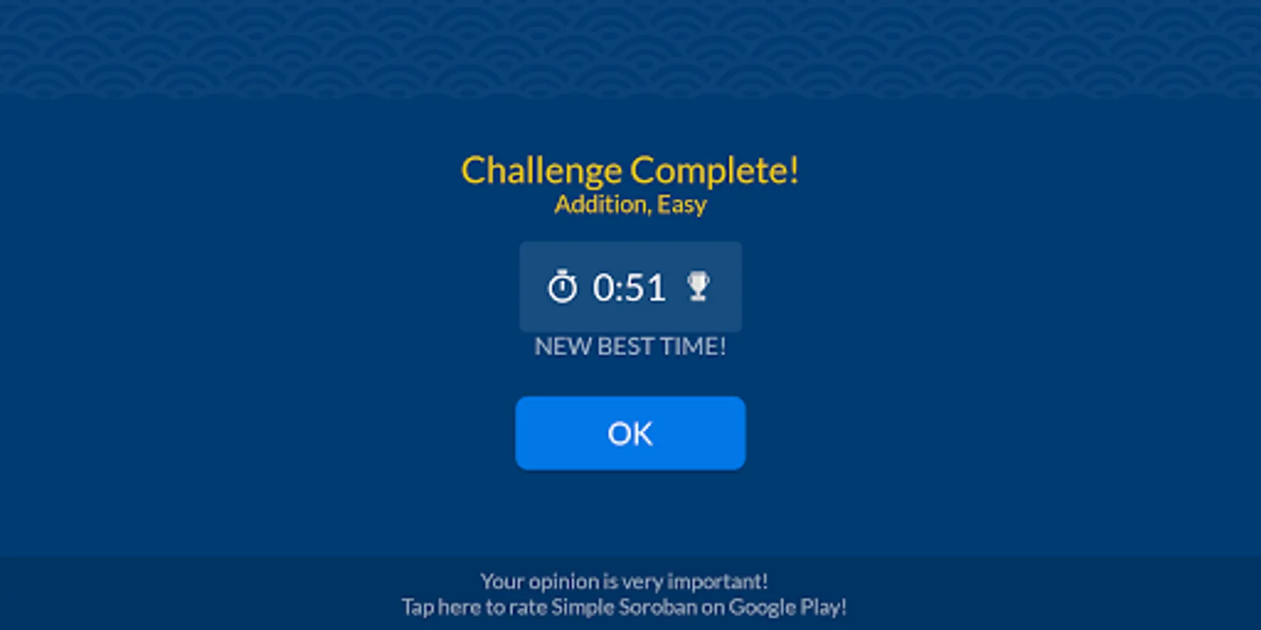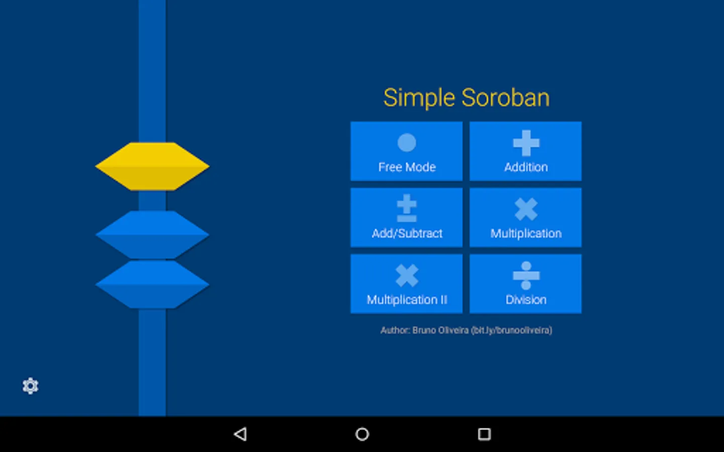 This application is a simple Japanese abacus (soroban / そろばん). It has a free mode where you can use the abacus freely, and a challenge mode with 4 operations (addition, subtraction, one and two digit multiplication, and division) and 3 difficulty levels (easy, medium, hard) where you must race against the clock to perform calculations.