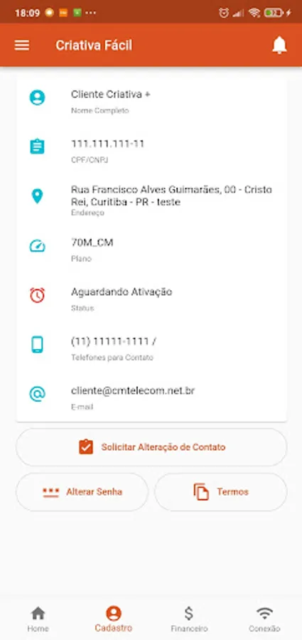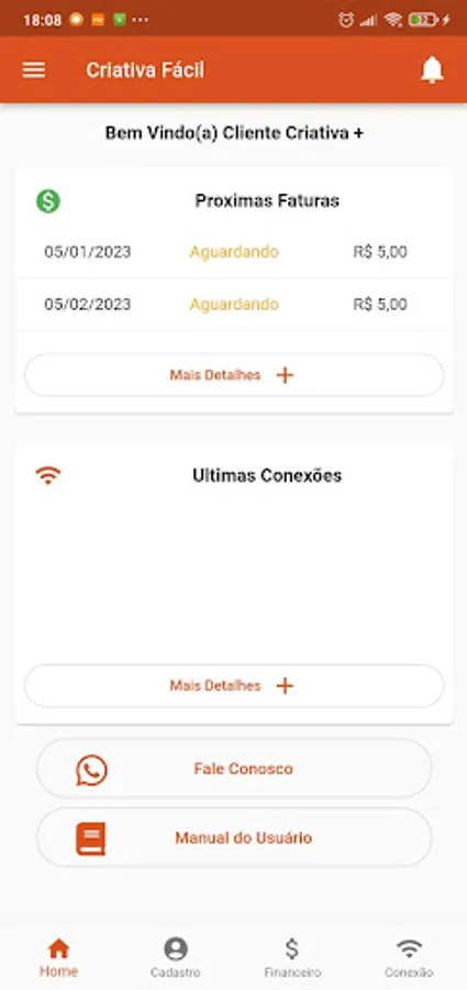 Criativa Fácil is an application aimed at Criativa + Internet customers - it is the Central for customers to have access to duplicate invoices, connection history and registration data.
