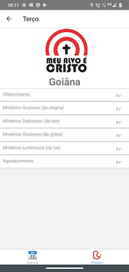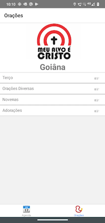 Application for the dissemination of the agenda of Grupo Jovem Meu Alvo é Cristo de Goiânia, and common prayers.
