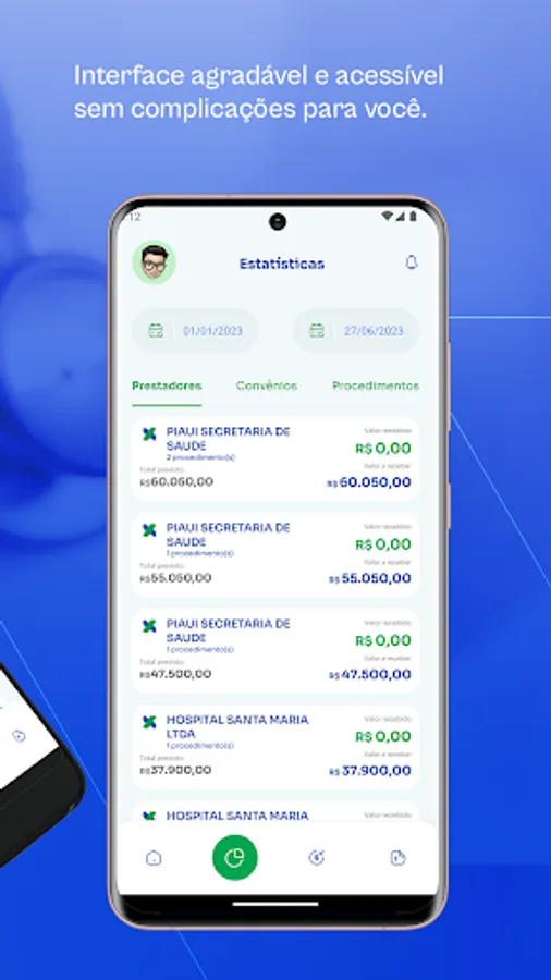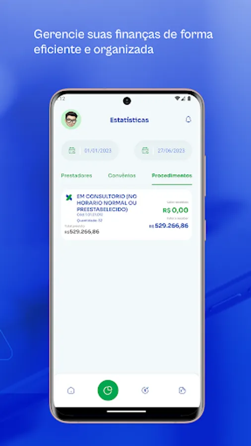 Fluxo Saúde is a comprehensive and efficient application designed to meet the accounting management needs of all healthcare professionals. With four main functions, the application offers a complete set of resources for doctors, dentists, physiotherapists, psychologists and other professionals in the field.