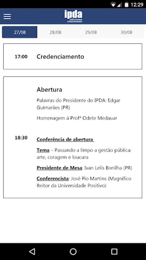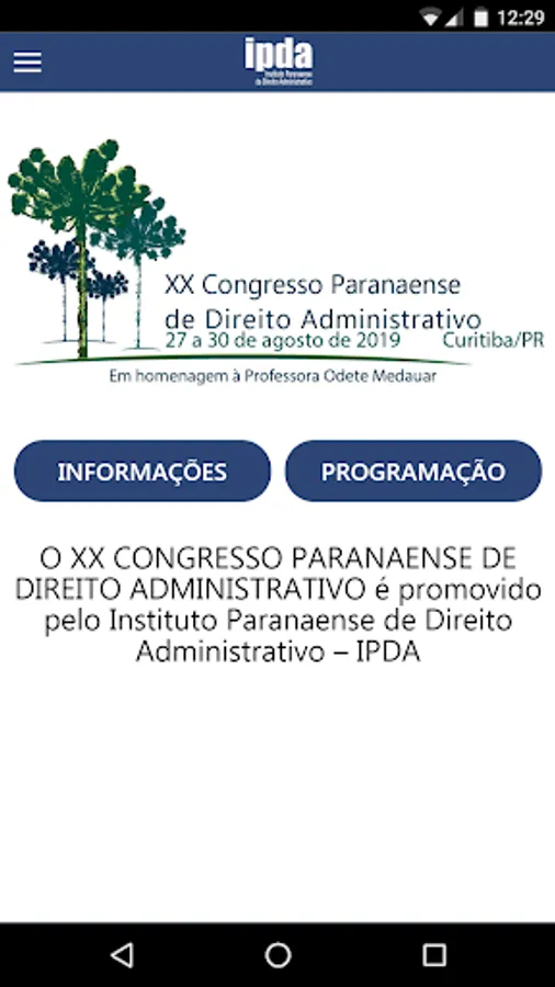 Application of the XXI Paranaense Congress of Administrative Law organized by the Paranaense Institute of Administrative Law - IPDA. Contains information about the event's schedule, speakers and news. Allows questions to be sent. During the event, notices will be sent via notifications. It is also possible to contact the event organizer directly.