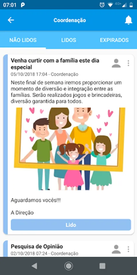 Through the new college application Nossa Senhora da Conceição, parents, guardians and students will have access to important information of the day-to-day school, such as: