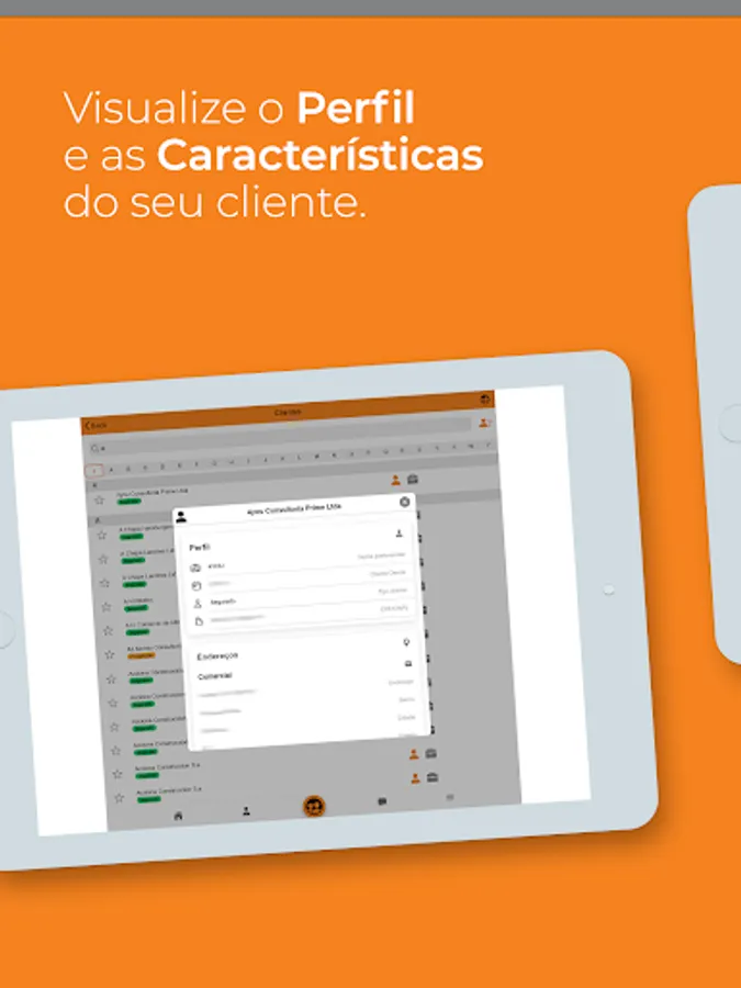 - Consulte o perfil do seu cliente, suas características, seus contatos e endereços.