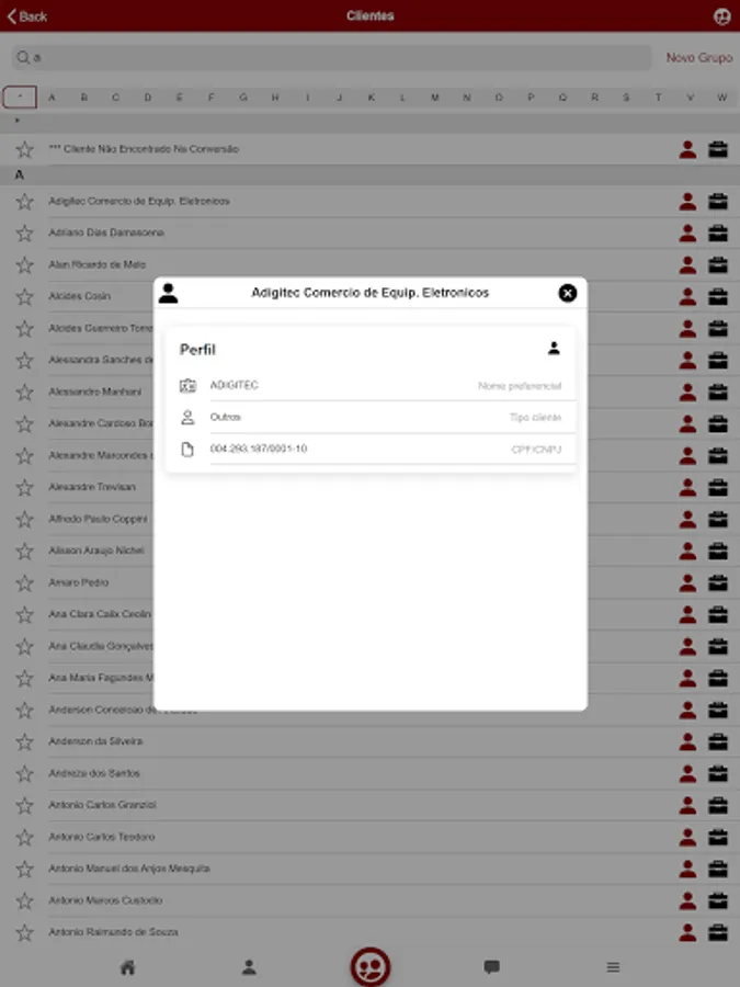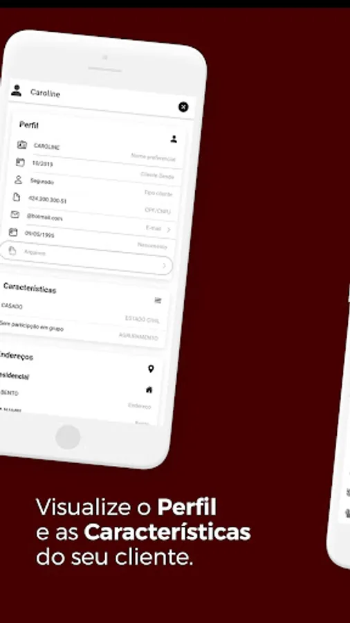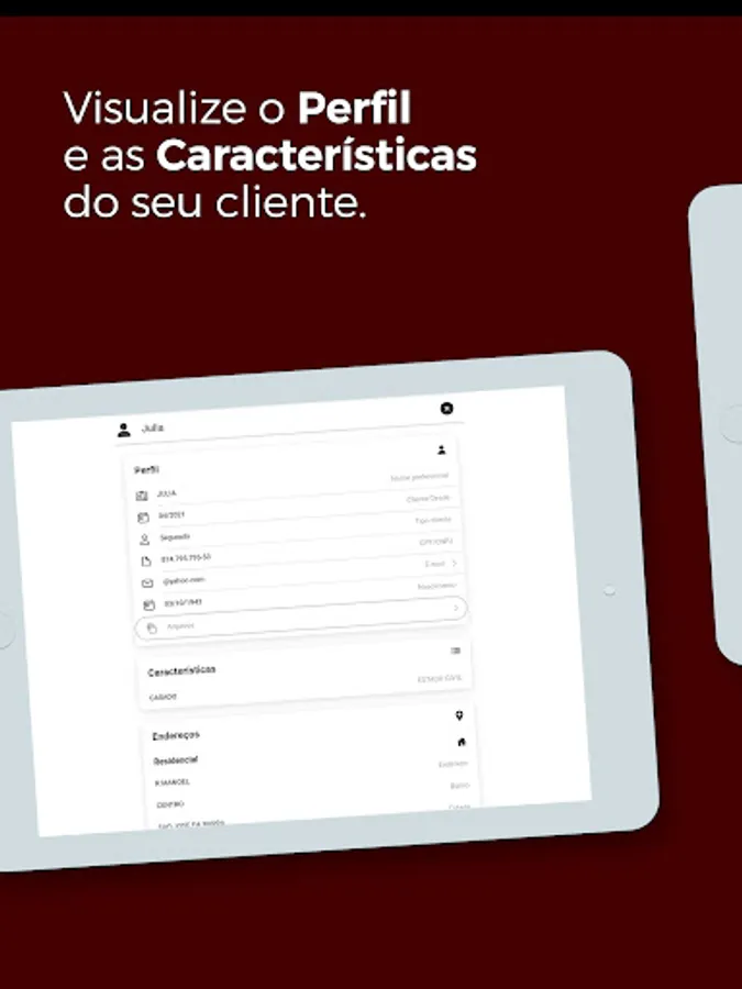 - See your customer's profile, its characteristics, its contacts and addresses.