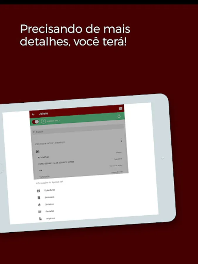 Active and inactive Documents Filter, in order to maintain a history of the client's documents; installments paid, scheduled and overdue, claims in progress and completed; Information on the endorsements made; Write-off of Files (Single and Linked): Files corresponding or not to a Policy.
