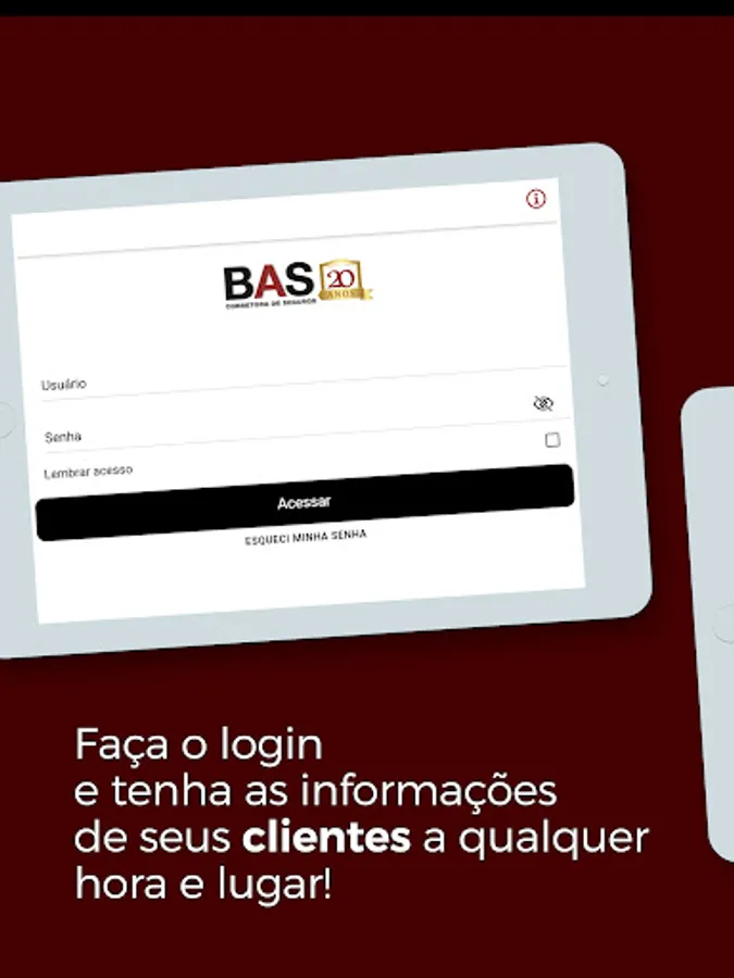 BAS - Broker is an application that makes available in a quick, simple and intuitive way, the main information of its clients. It is the exclusive solution that leaves the broker at ease, having the information at their fingertips anytime, anywhere via smartphone.