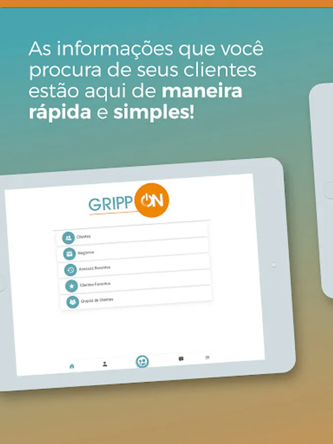 Gripp - Broker is an application that makes available in a quick, simple and intuitive way, the main information of its clients. It is the exclusive solution that leaves the broker at ease, having information at their fingertips anytime, anywhere via smartphone.