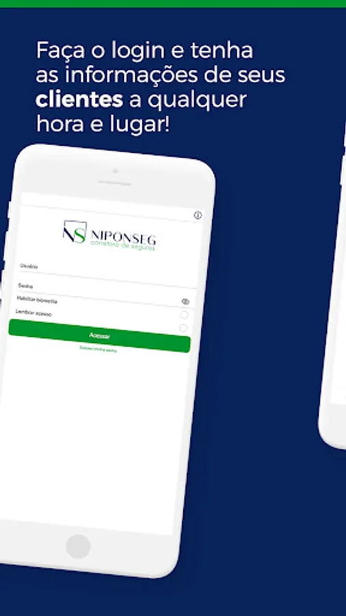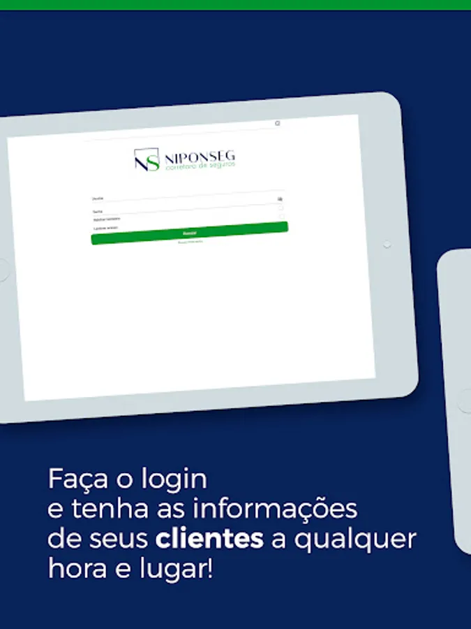 NIPONSEG - Corretor is an application that provides quickly, simply and intuitively, the main information of its customers. It is the exclusive solution that leaves the broker with peace of mind, having the information at their fingertips anytime and anywhere via smartphone.
