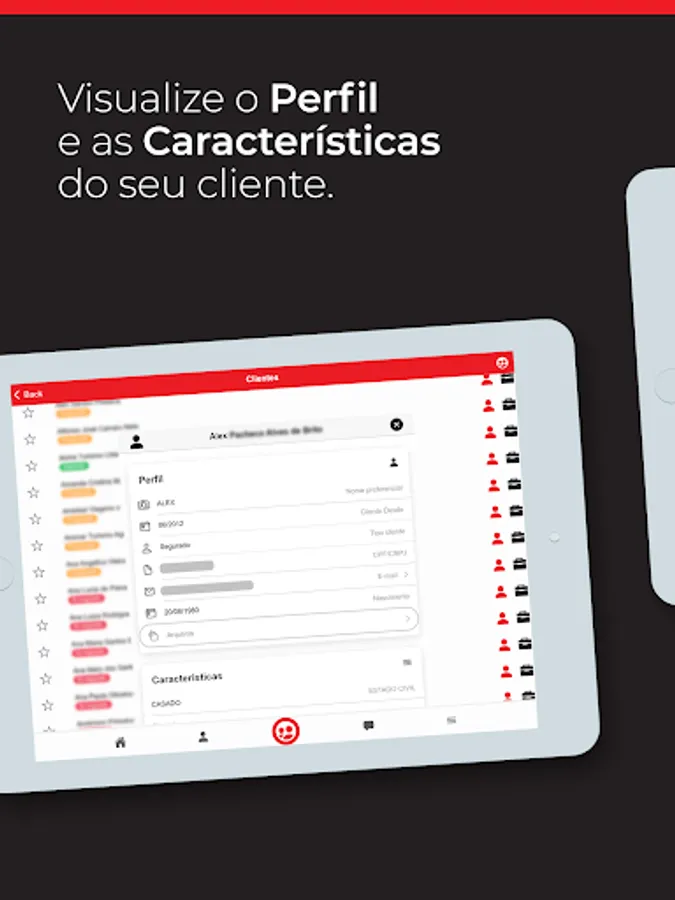 - Consult your client's profile, characteristics, contacts and addresses.