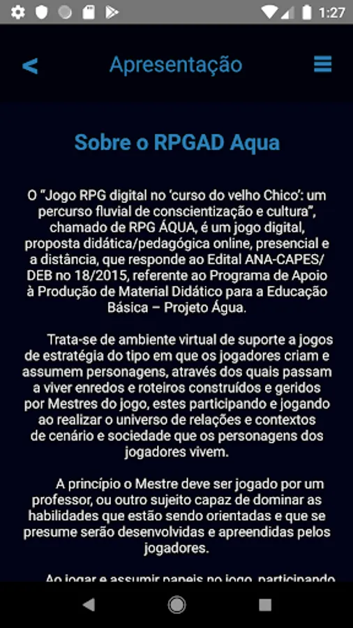 The "Role Playing Game" or RPG, a game that emerged in the United States in the 70s and was later brought to Brazil, scholars note that this type of game has characteristics (collaboration, cooperation, interdisciplinarity, among others) that make it a potential pedagogical tool, given that this game did not come with pedagogical intentions but rather with entertainment.
