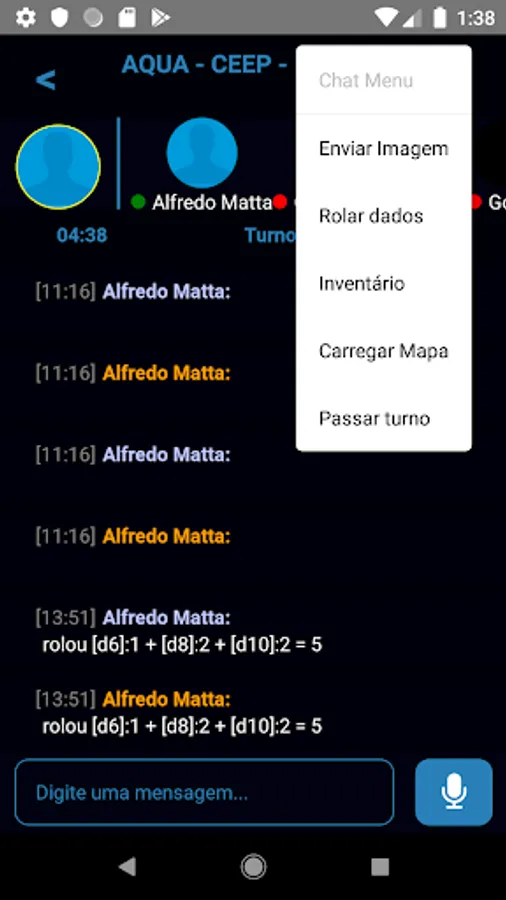 In this app, the player is invited to choose one or more of the thirteen available themes, register, create a table to be a master, or play as a character on a table created by another master.