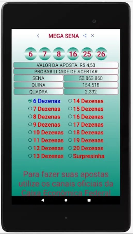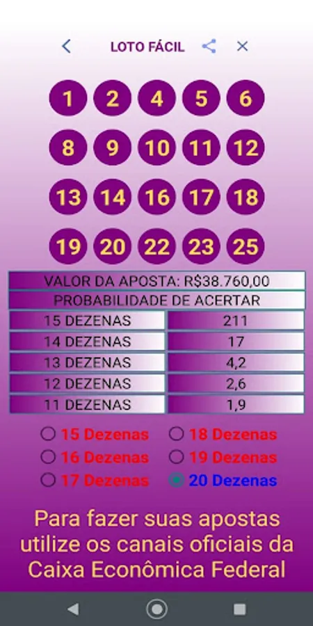 The Palpiteiro APP is intended to assist users in choosing the dozens that will compose their bets.