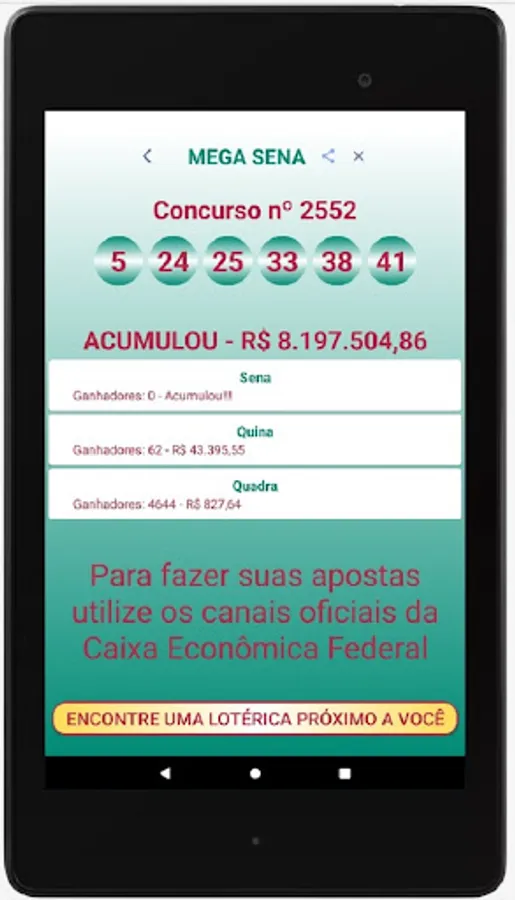 It is important to point out that we do not accept bets. We suggest that users always look for a channel authorized by Caixa Econômica Federal to place their bets, such as lottery outlets and the institution's electronic channels.