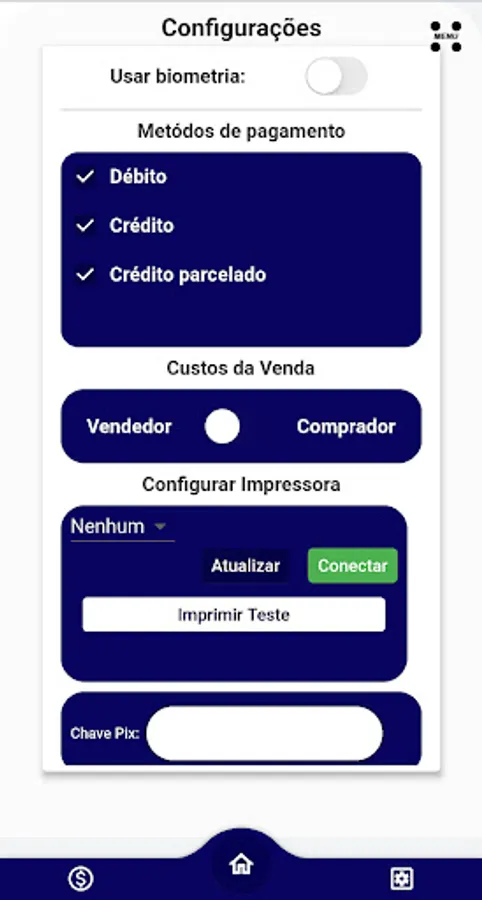 With this new version our customer will be able to sell with the Bluetooth card machine, make sales through card data, generate bills, generate payment links, simulate sales to check values and fees.