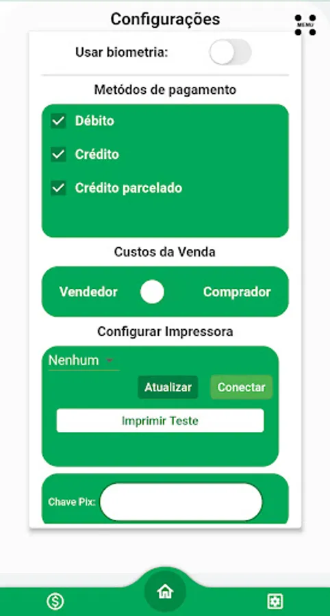 With this new version, our customer will be able to sell with the Bluetooth card machine, make sales through card data, generate bills, generate payment links, simulate sales to verify values and fees.