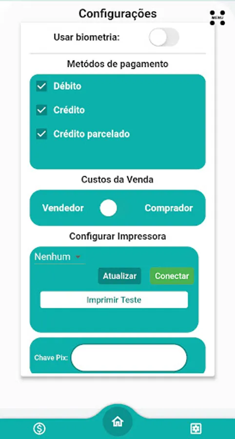 With this new version our customer will be able to sell with the Bluetooth card machine, make sales through card data, generate bills, generate payment links, simulate sales to check values and fees.