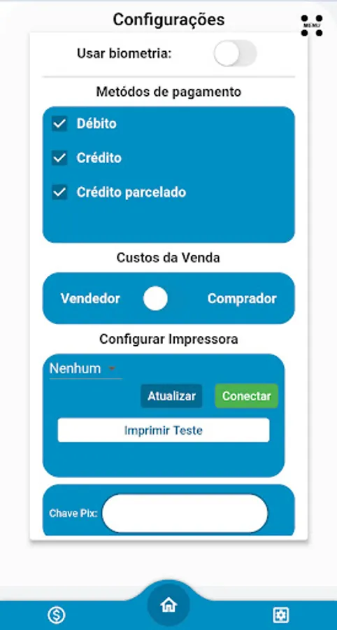 With this new version, our customer will be able to sell with the Bluetooth card machine, make sales through card data, generate slips, generate payment links, simulate sales to verify values and fees.