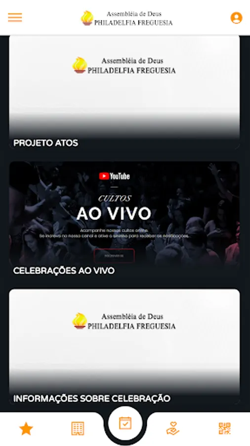 🎶 Contents (Audio/Video): Allows you to view and listen to Church content available on the App;