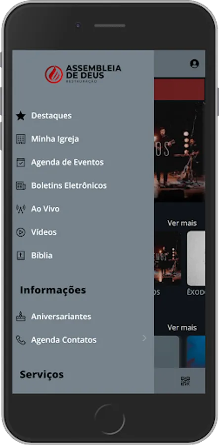 🎶 Content (Audio/Video): Allows you to view and listen to Church content available on the App;