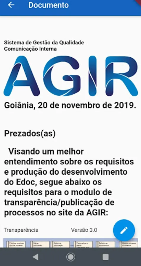 The AGIR e-doc system app is focused on simply and quickly meeting the main functionalities of the e-doc AGIR system, developed and maintained by the GCTI Software Development Service - AGIR, in order to manage the processes and documents. electronic archives with user-friendly interface and innovative working practices. One of its main features is the release of the role as physical support for institutional documents and the sharing of knowledge.