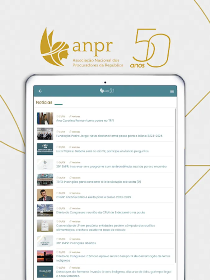 The National Association of Prosecutors of the Republic was created on September 22, 1973, in an assembly held at the headquarters of the Attorney General's Office in the Federal District, with the participation of 40 prosecutors, following a series of preparatory meetings. The entity was born with the name of Association of Prosecutors of the Republic and its first president was the attorney Geraldo Andrade Fonteles.
