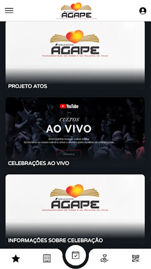 🎶 Contents (Audio/Video): Allows you to view and listen to Church content available on the App;