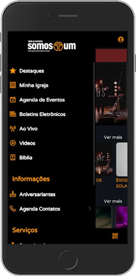 🎶 Contents (Audio/Video): Allows you to view and listen to Church content available on the App;