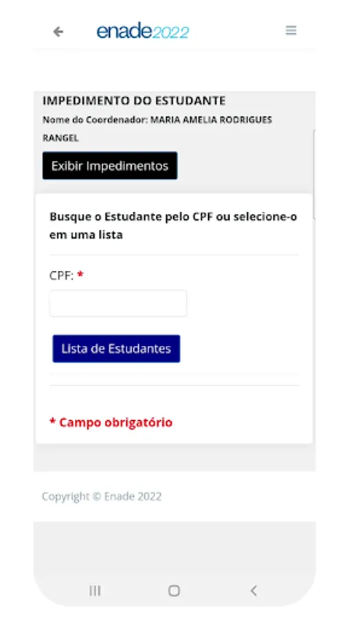 Internal application for application coordinators of the National Student Performance Examination (Enade)