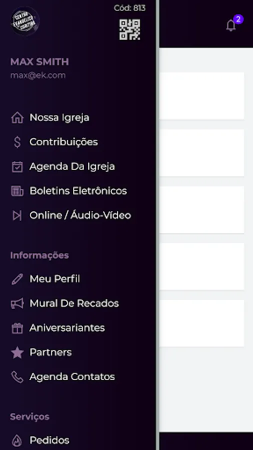 The APP allows the relationship between Centro Evangélico de Curitiba and its members or visitors.