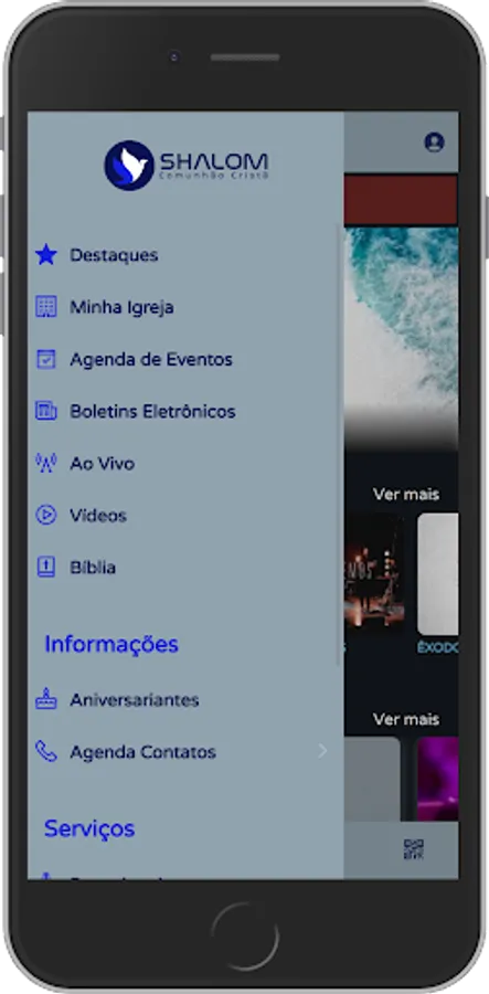 🎶 Contents (Audio/Video): Allows you to view and listen to Church content available on the App;