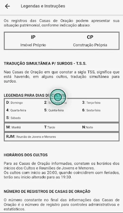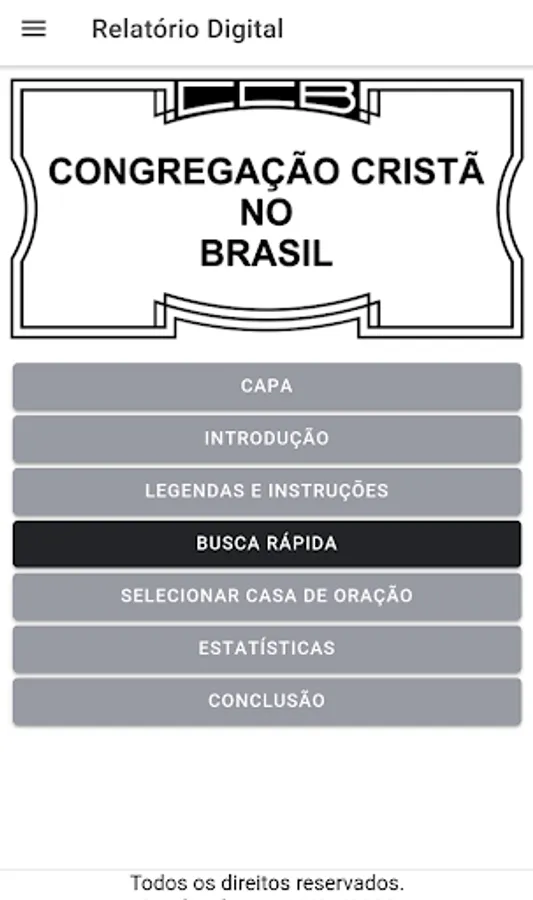 Smartphone application digitally containing the content of the Annual Report of Prayer Houses belonging to the Christian Congregation in Brazil.