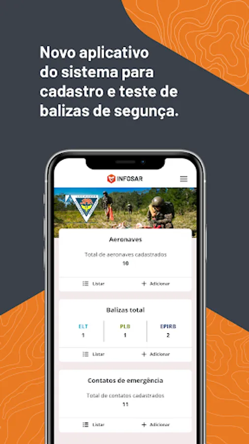 The INFOSAR NEO application is the support system of the Airspace Control Department (DECEA) for the control of registration and use of 406 MHz beacons used in aircraft (ELT), vessels (EPIRB) or for personal use (PLB).