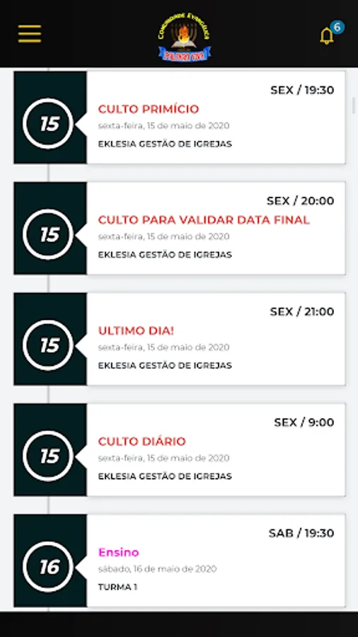 * "Agenda": See a complete calendar of Cults, Events, its Scale in Ministries / Departments of the Church;