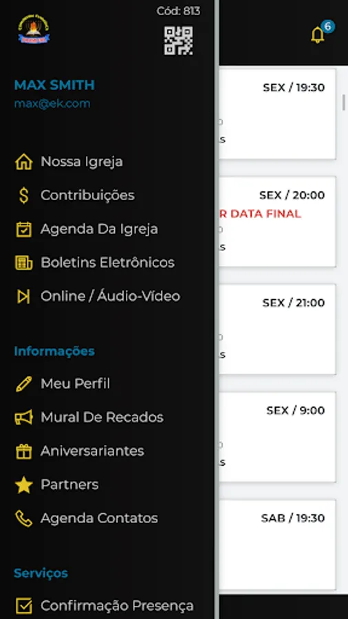 * In the item "My Profile" it is possible to update your registration data in the Church;