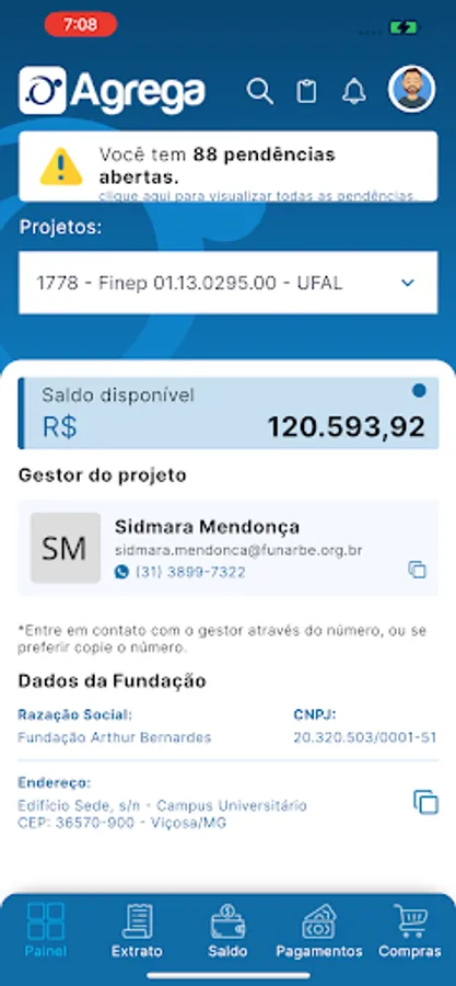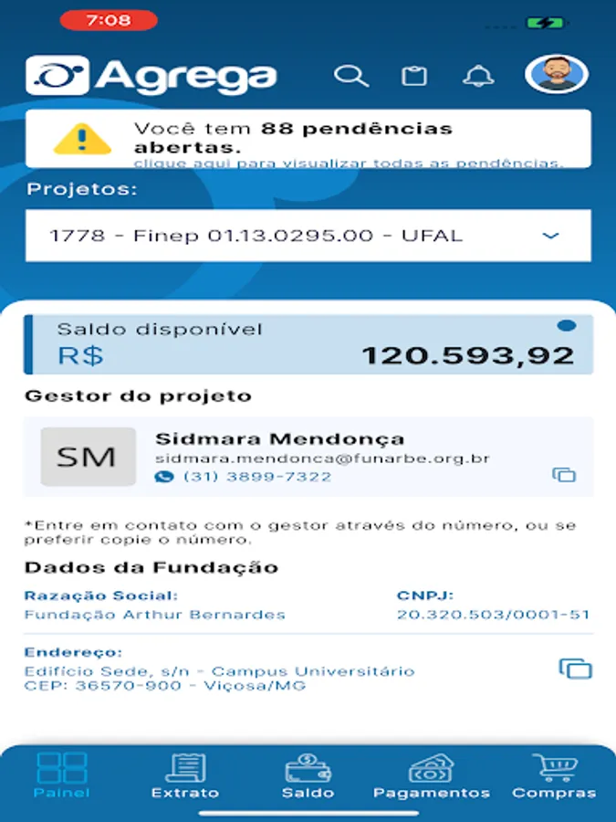 Through this app, the coordinator will be able to contact his manager, consult the balance and statement of the projects, monitor the progress of payment and purchase requests, in addition to releasing the payment of grants and giving an opinion on quotations.