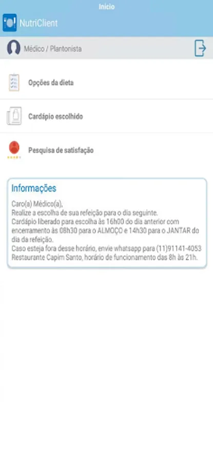 Full description (text up to 4000 characters): Application for choosing meals that guarantees convenience and agility to previously authorized doctors and on-call staff, while working at Hospital Sírio-Libanês.
