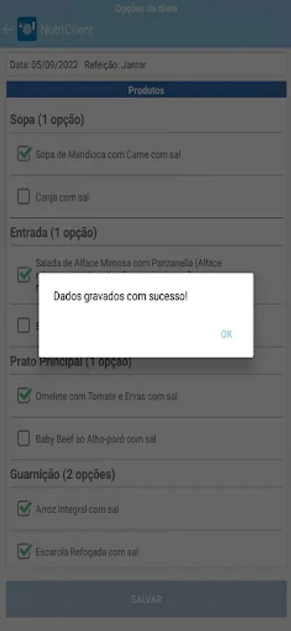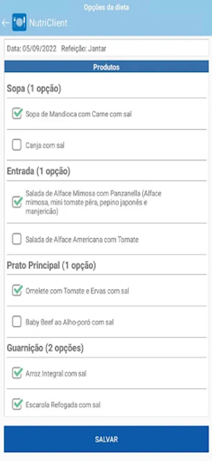 The menu has a previously selected option, as a suggestion, but allows free choice according to preference.
