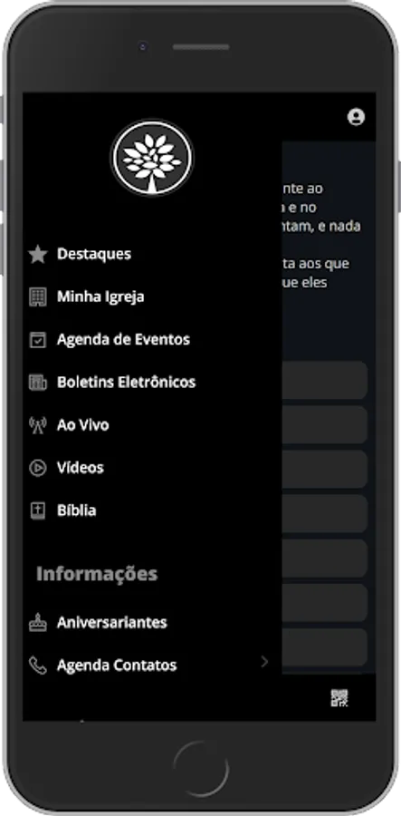 * Contents (Audio/Video): Allows you to view and listen to Church content available on the App;