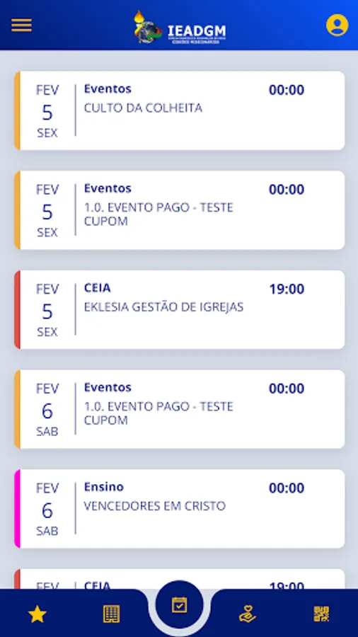 * "Agenda": See a complete calendar of Cults, Events, its Scale in Ministries / Departments of the Church;