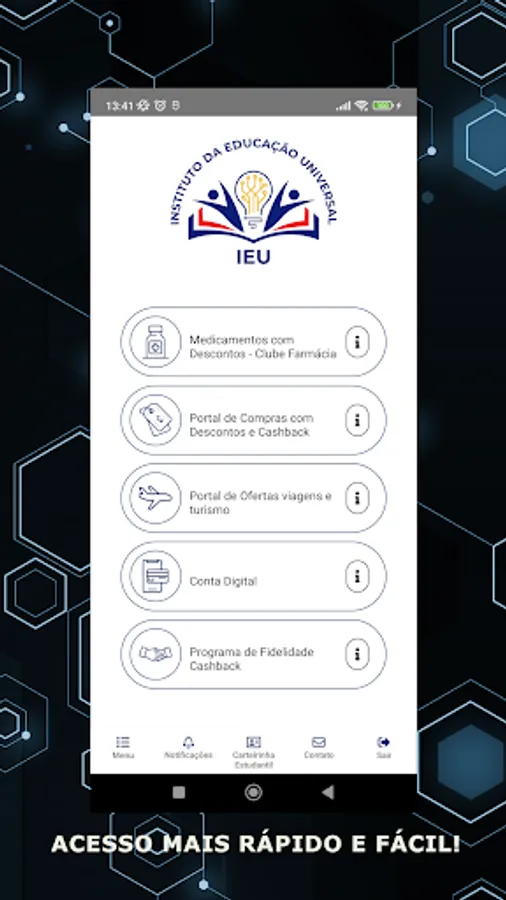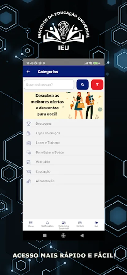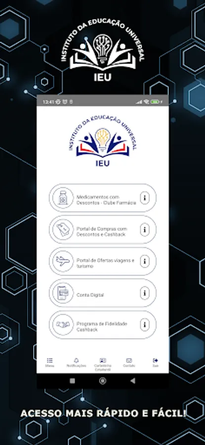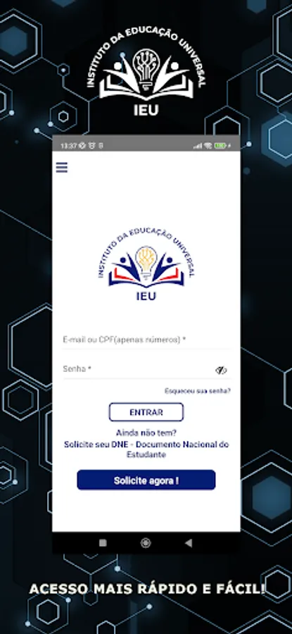The IEU - Universal Education Institute, is a social organization, which operates throughout the national territory, in the promotion of the defense of the interests of students' rights, before educational institutions, representative entities and other forums of the student movement, in line with the current legislation. It issues the DNE – National Student Document, in accordance with the Half Price Law, Law 12.933/2013.
