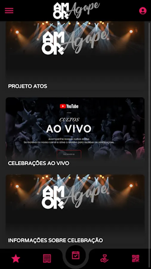 🎶 Contents (Audio/Video): Allows you to view and listen to Church content available on the App;