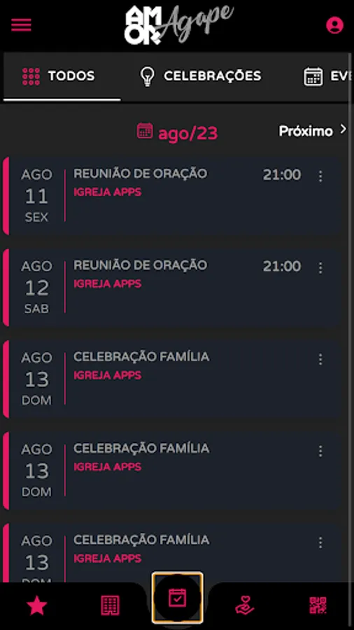 ⛪ Agenda: See a complete calendar of Services, Events, your Scale in Ministries/Departments of the Church;