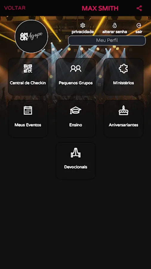 ✏️ In the My Profile item, it is possible to update your registration data in the Church;