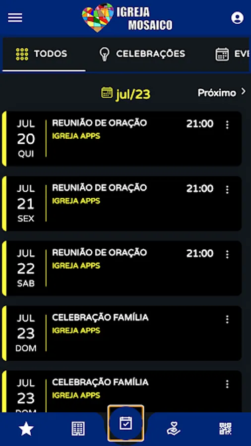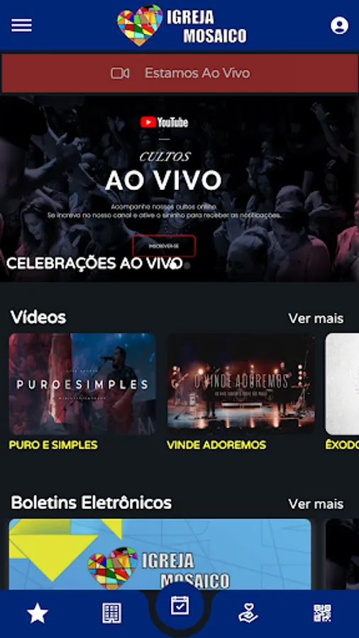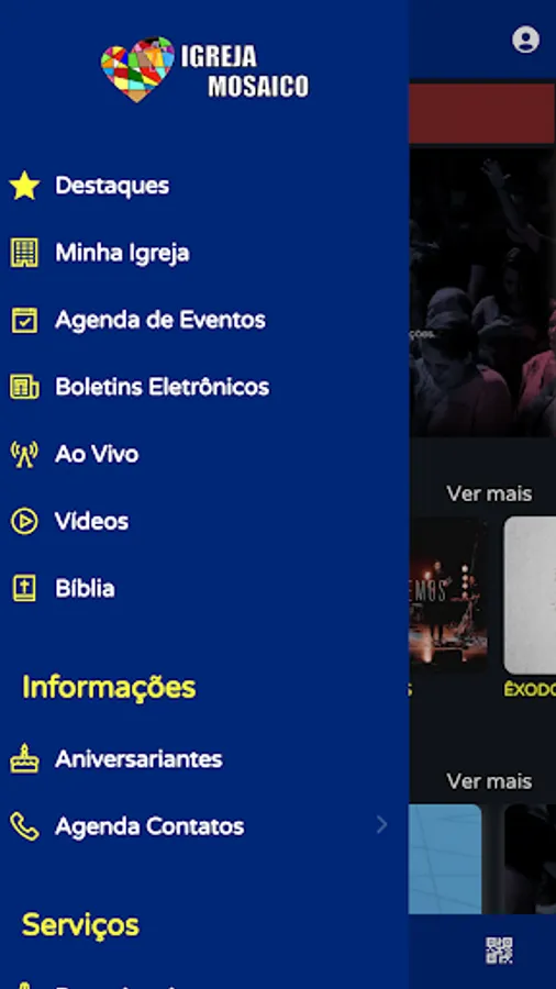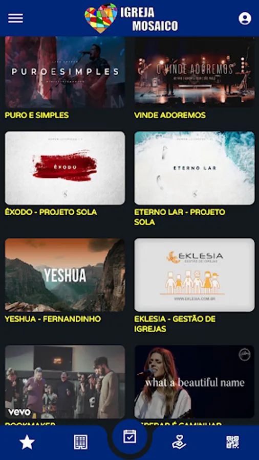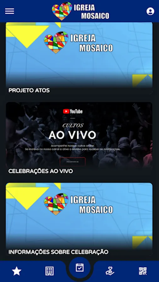 🎶 Contents (Audio/Video): Allows you to view and listen to the contents of the Mosaic Church available on the App;