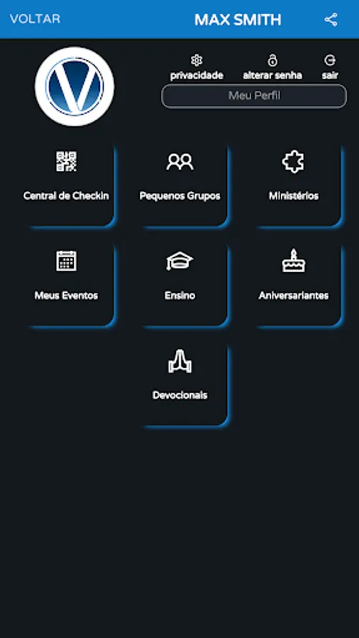 ✏️ In the My Profile item, it is possible to update your registration data in the Church;