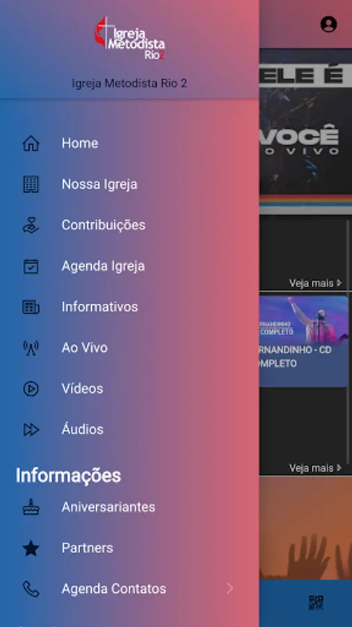 * "Contents (Audio / Video): It allows viewing and listening to Church content available on the App;