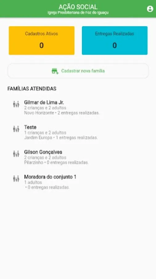 Control of social actions of the Presbyterian Church of Foz do Iguaçu. Exclusive application for diakonia use.