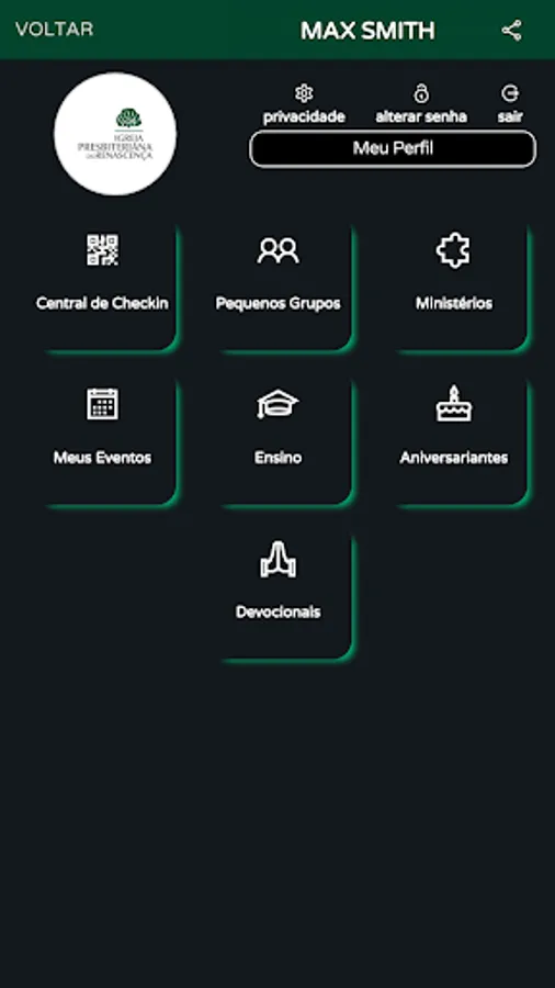 ✏️ In the My Profile item, it is possible to update your registration data in the Church;
