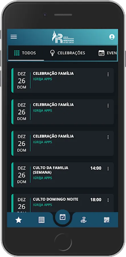 ⛪ Agenda: View a complete calendar of Services, Events, their Scale in Ministries/Departments of the Church;