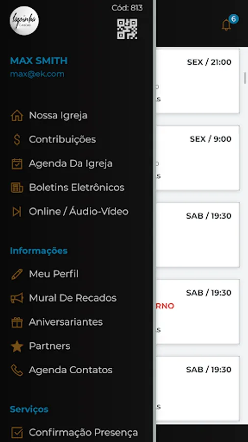 * In the item "My Profile" it is possible to update your registration data in the Church;